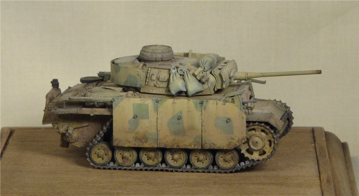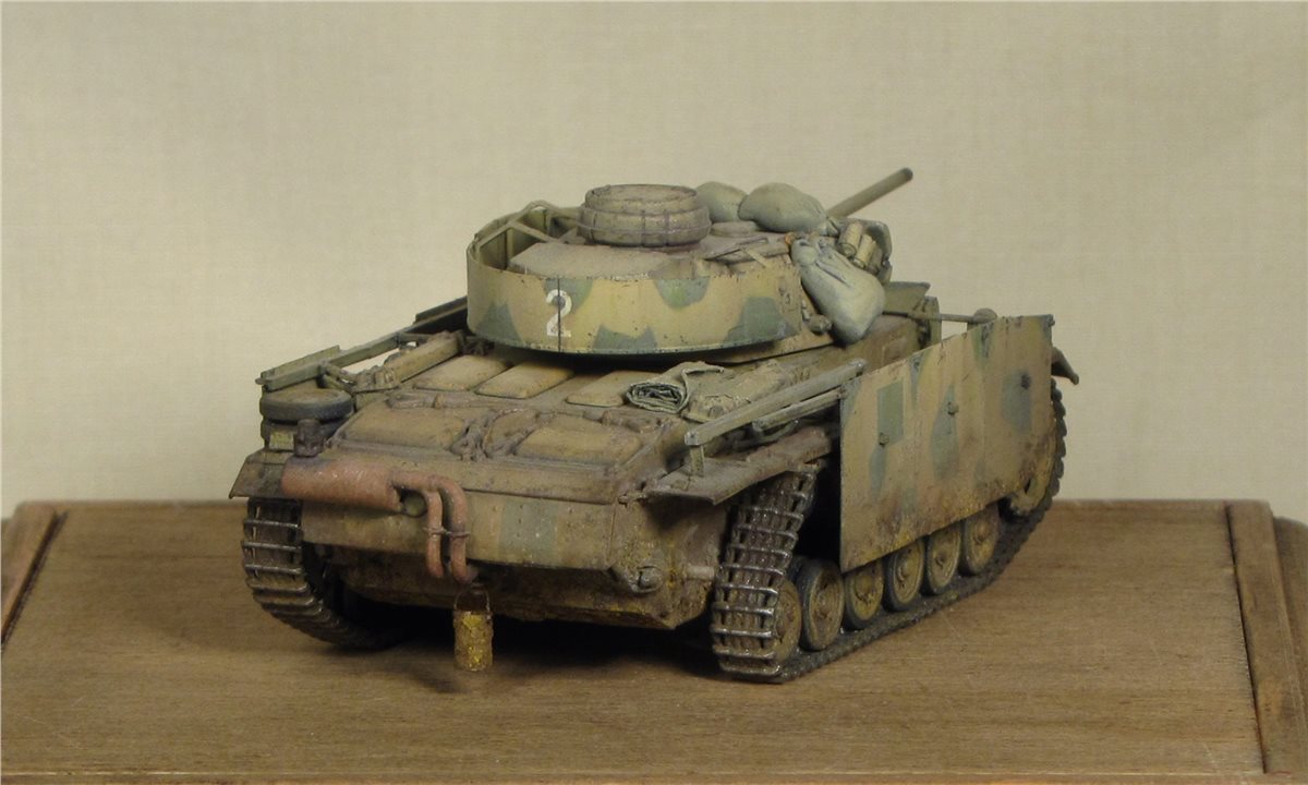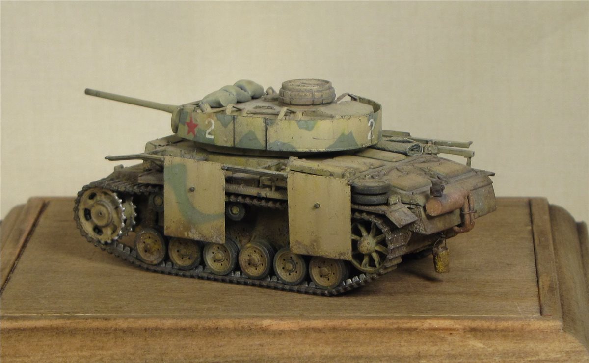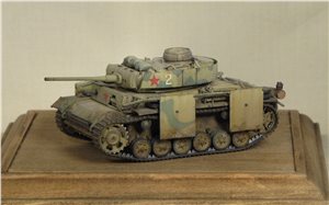 По легенде: Была захвачена Красной Армией, отремонтирована в полевой мастерской и введена в строй. Часть утерянных экранов была заменена экранами с других машин, подручными средствами (мешки с песком). Балочные кресты (ранее были нанесены на экраны корпуса