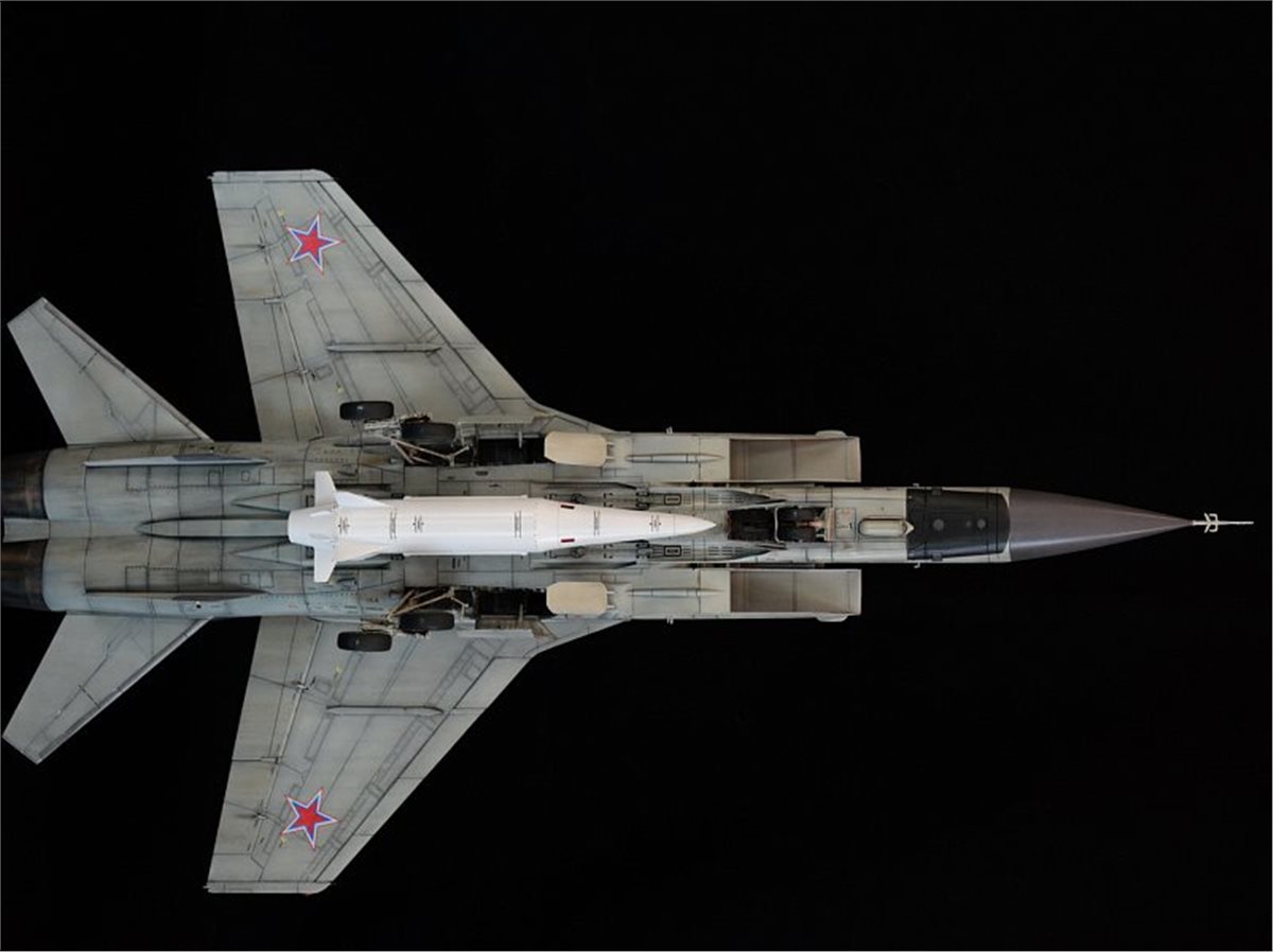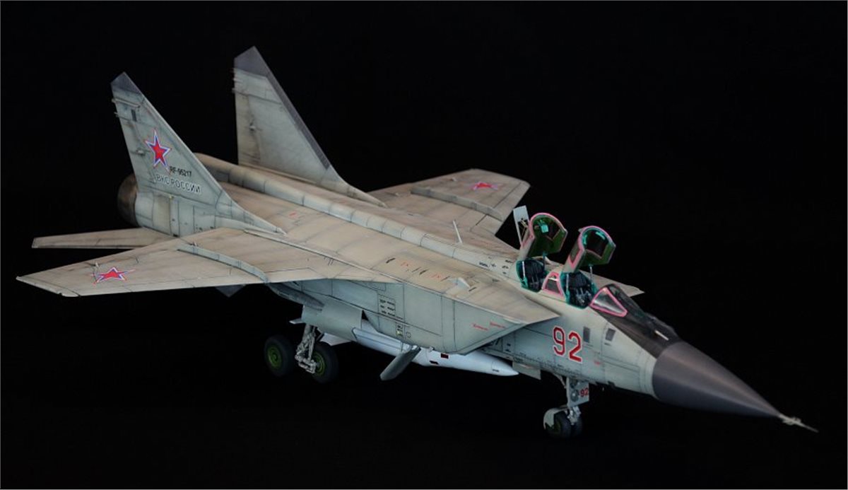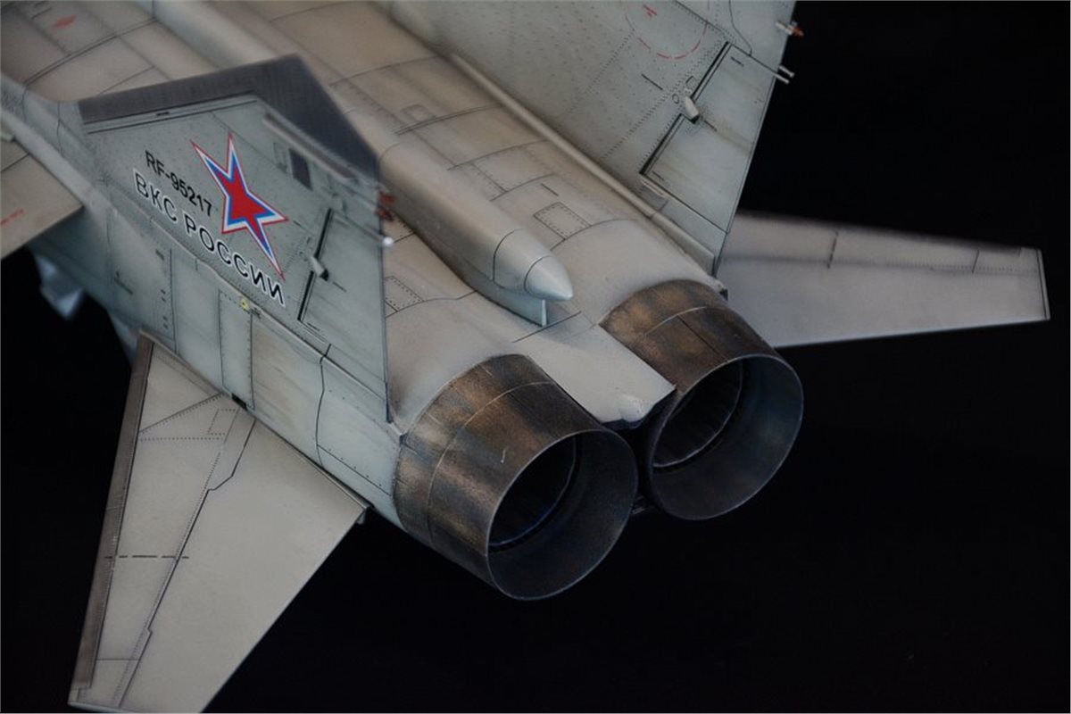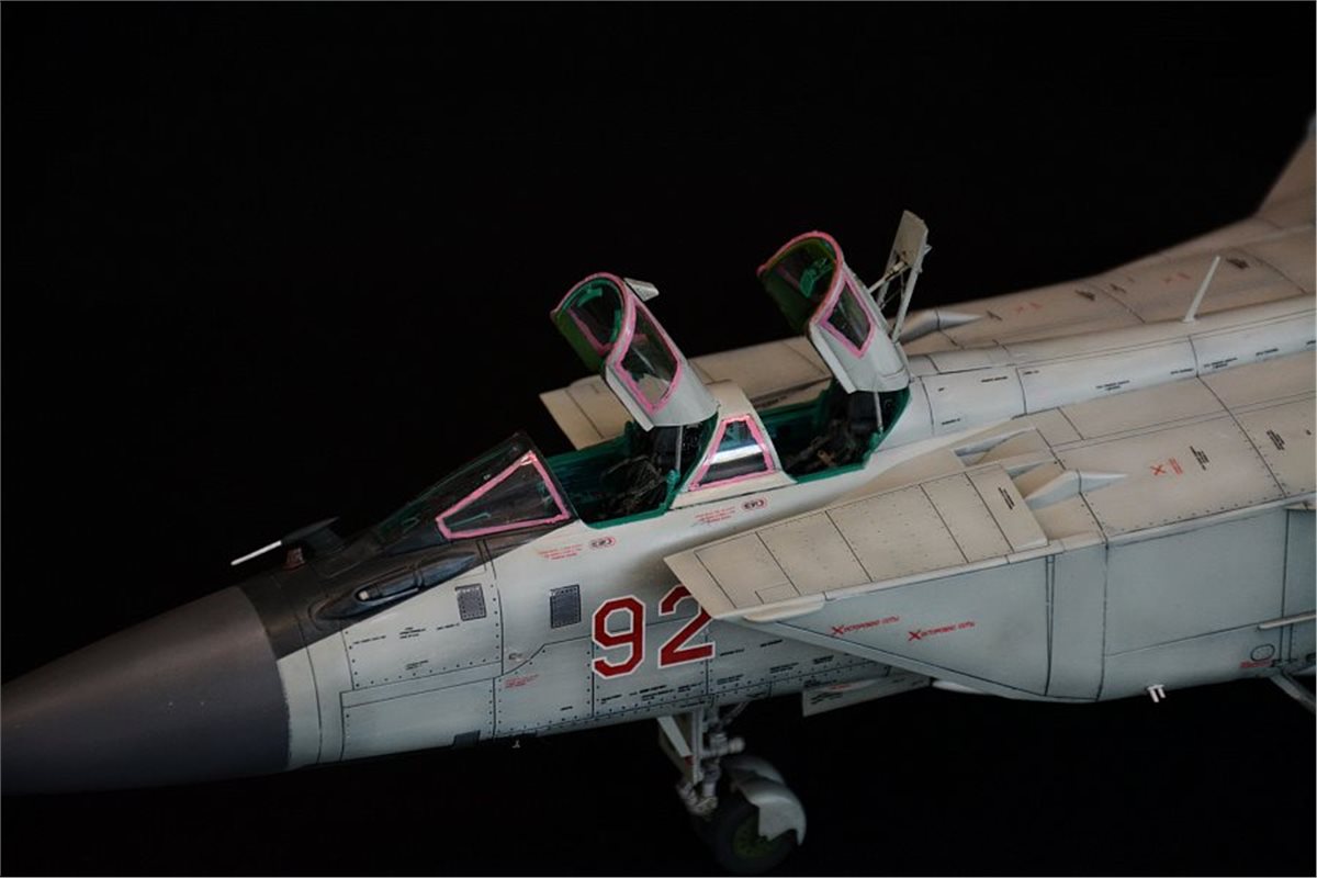 Доброго времени суток, коллеги. Представляю на обзор и суд свое крайнее творение. Набор всем известный. Буду краток. Использовал из дополнений травление от ЭДИКА в кабину, конверсионный набор от АМК ( металлические стойки), и смоляной КИНЖАЛ" от Арма моделс. Сборка затруднений не вызвала. Окраска: грунт, прешейдинг, краски Ганза и Акан, немного высветлил местами, смывка от тамии, погодные явления масло художественное, сопла тонировал пудрой от Тамии., на финише лак матовый Акан. Не получилось нанести аккуратно герметик на остекление, чему очень расстроен. Сильно "ушатывать" не стал, по фотографиям прототипов - носителей "Кинжалов" борта чистенькие..... Приятного просмотра, сильно не пинайте за испорченную модель.