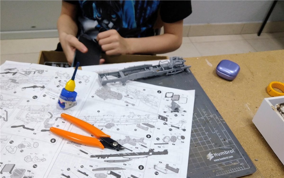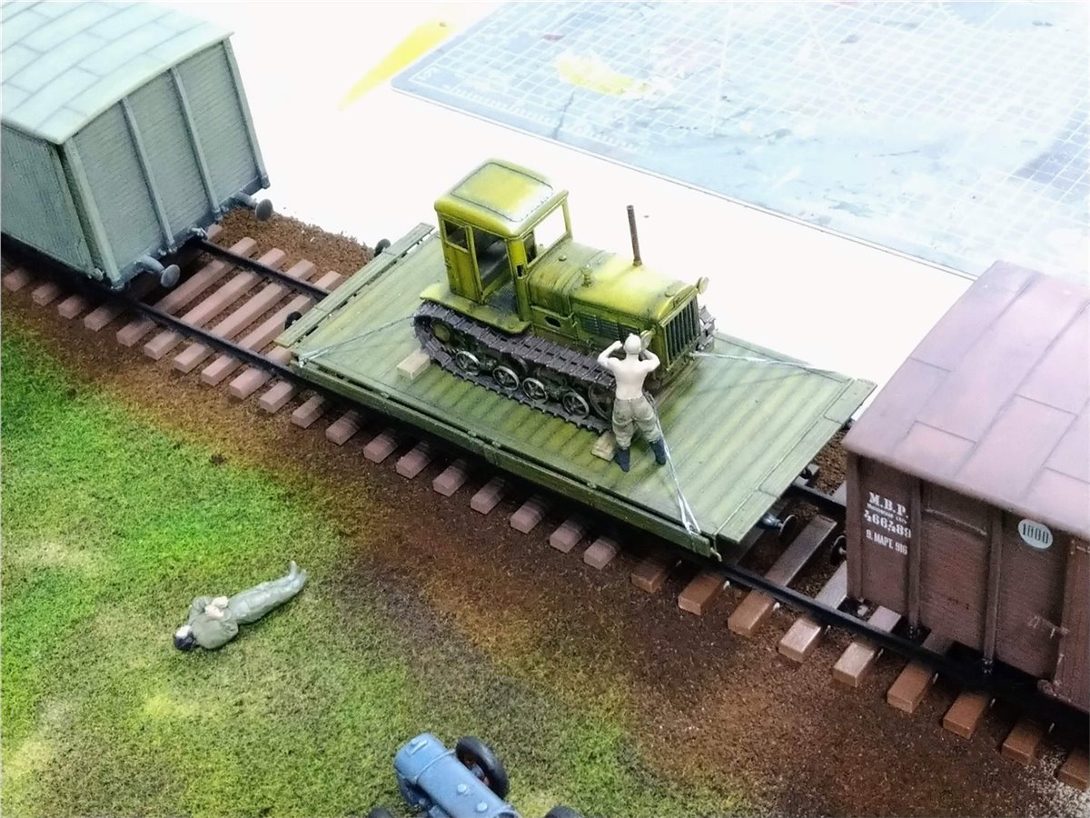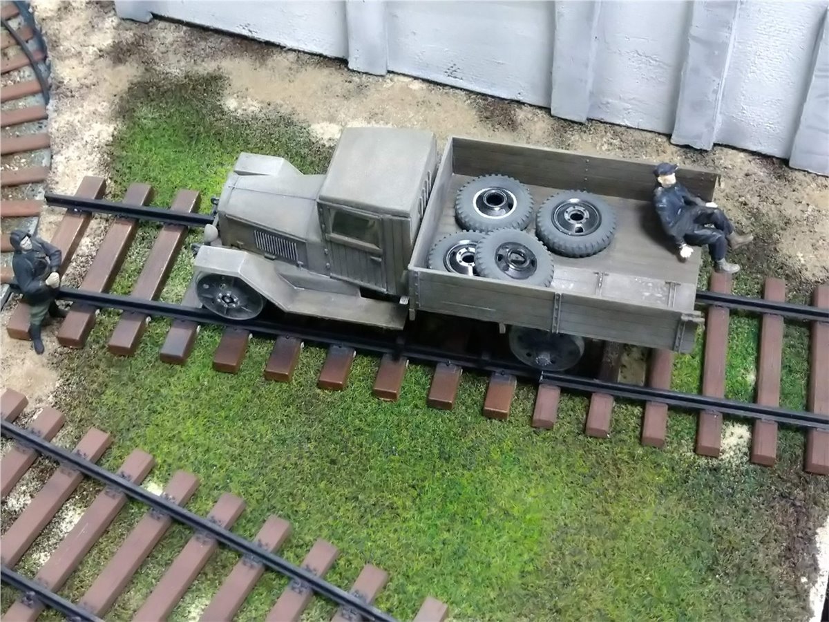 Разместили пути в депо, и в первом приближении расположили технику, людей, зверей и птиц.Юноши красили и клеили свои проекты.