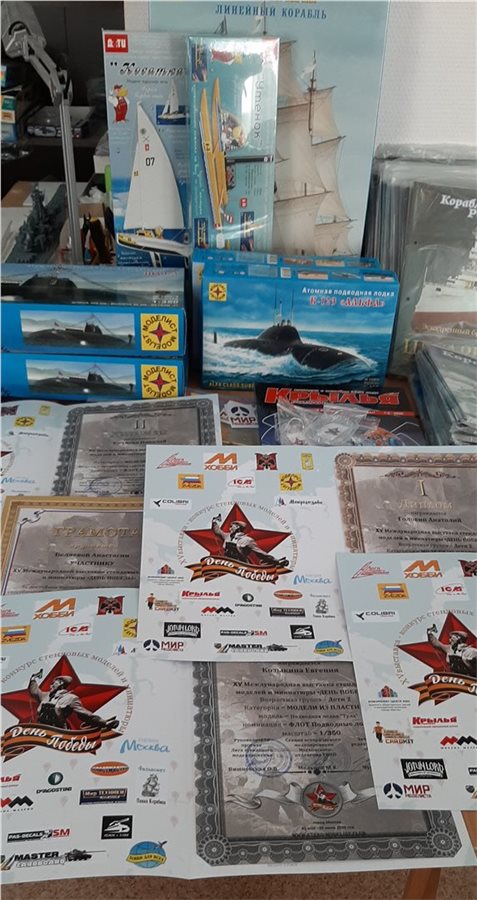 Вчера получили посылки из Москвы. В них - заслуженные ребятами награды за выставку и подарки от Лиги стендового моделирования к юбилею "Детской флотилии".