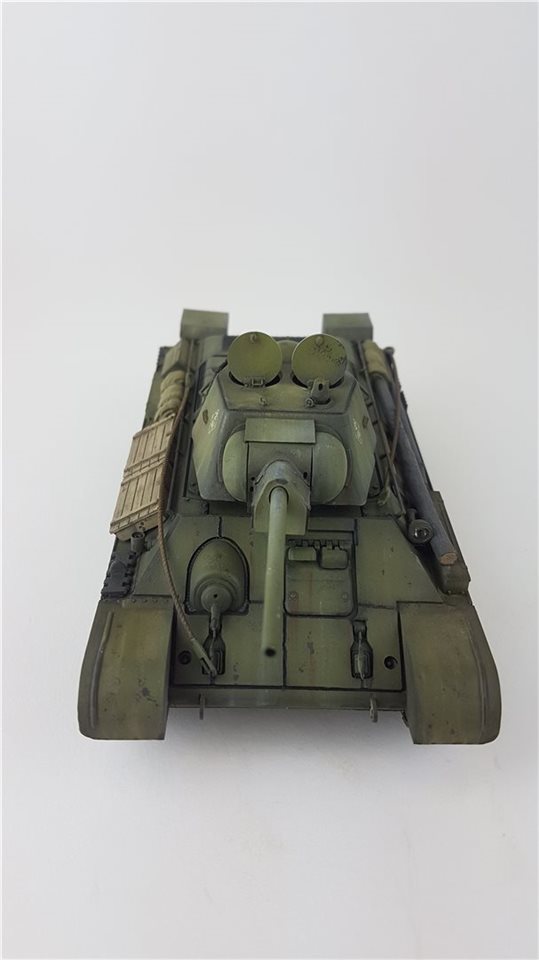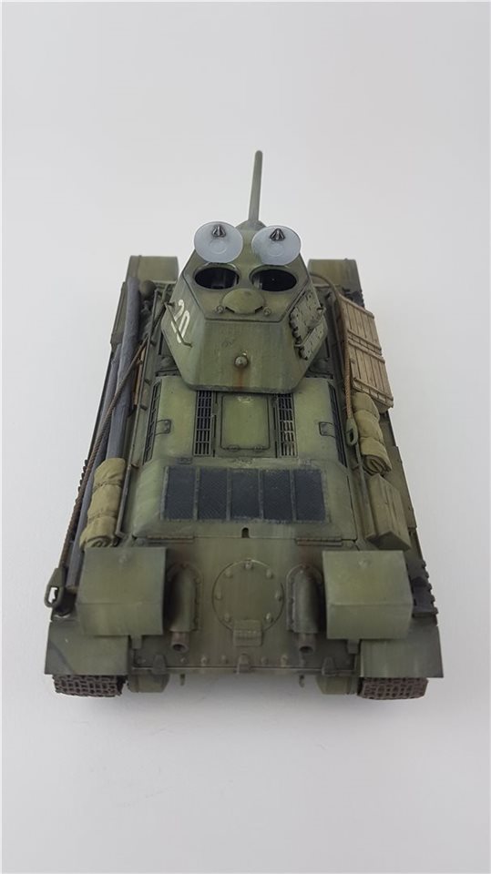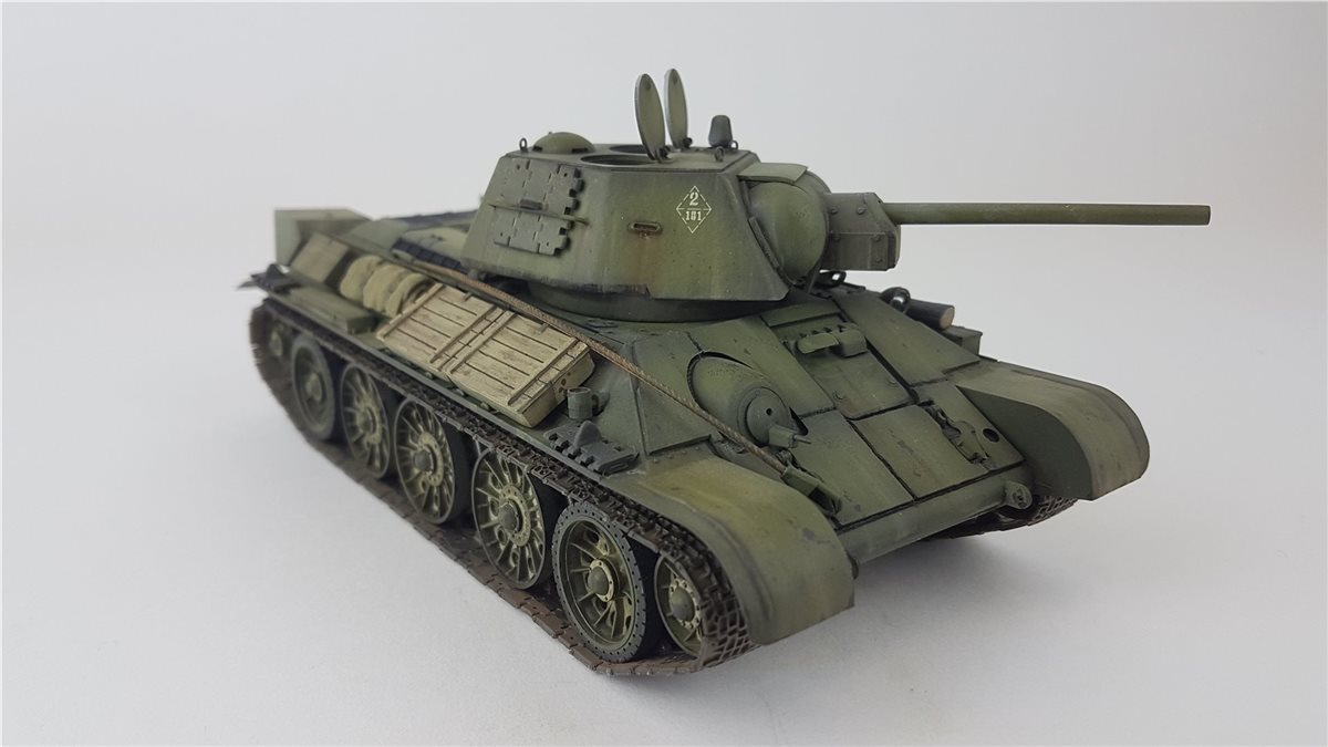 Т-34/76, 1943 года, Тамия. Использован лист доп. брони корпуса, входящий в комлект, но не использующийся при постройке по инструкции. Однако, Т-34/76 гайки с доп. броней были. Фото условного прототипа в галерее.