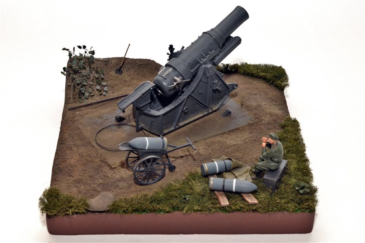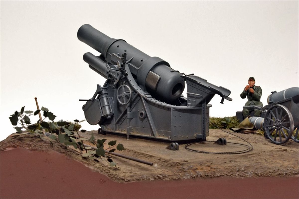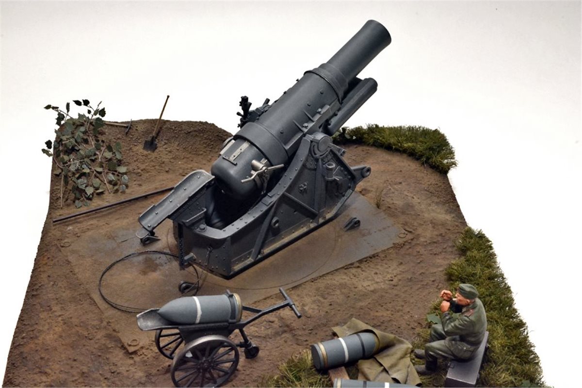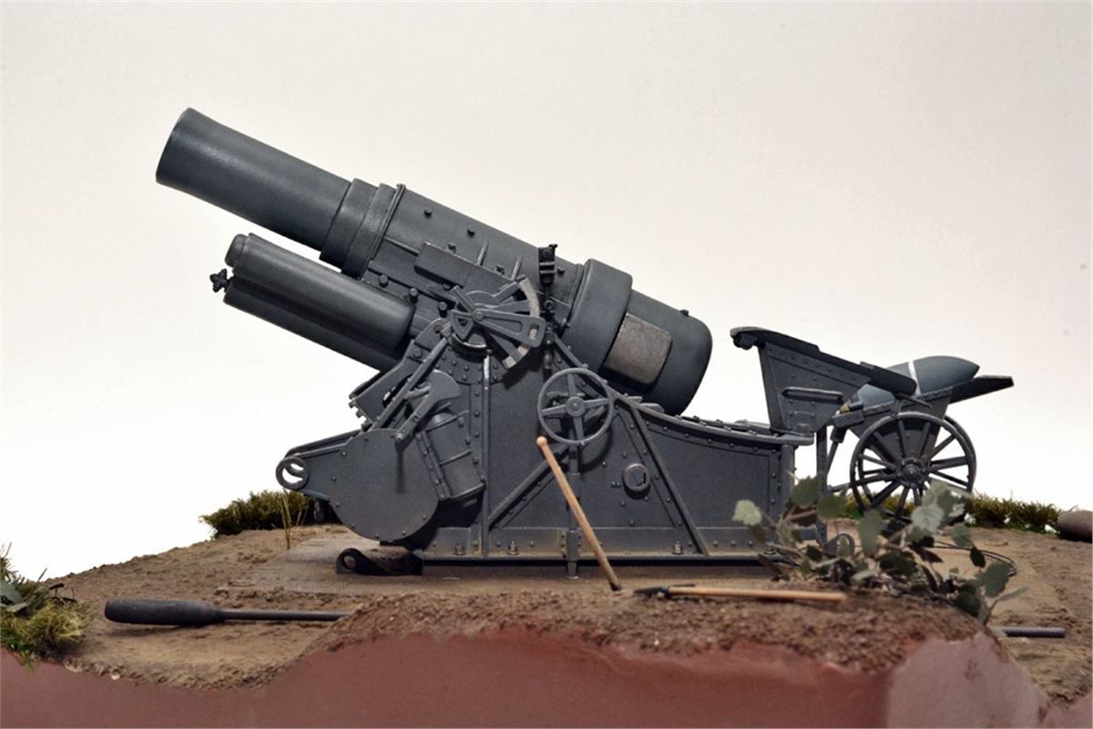 Исходный набор Takom арт.№2011. Мнение о нем у меня сложилось двоякое. С одной стороны, если делать изкоробочный вариант, то сборка его не будет сложной. Деталей в наборе немного. Качество литья хорошее. Сходимость деталей нормальная. То есть на выходе получится этакая простенькая, но при этом весьма эффектная "модель выходного дня". Если-же начать копаться в матчасти орудия, то все становится не так просто. Модель в наборе сильно упрощена. Часть элементов имеют неверные размеры или форму (например, слишком короткие рукоятки маховиков, отсутствует характерный элемент на казеннике, неверная форма передней части люльки, на поворотной части платформы нет приямка для отката ствола, неправильный прицел, отверстия на зубчатых секторах расположены слишком низко и прочее). Также, отсутствует ряд деталей (нет проушин и фиксатора на зубчатых секторах, а также шпилек и гаек крепления станка к платформе). Все это влечет за собой достаточно большой объем доработок модели. Кроме того необходимо отметить и не совсем удачное членение отдельных деталей в наборе. В результате, после их склейки на модели образуются швы там, где их быть не должно, и нужно их шпаклевать. Таким образом, для того чтобы привести матчасть модели в соответствие с оригиналом нужно изрядно повозиться. В ходе сборки я не ставил себе цель устранить все недостатки модели по матчасти, а сосредоточился лишь на исправлении только самых явных и видимых косяков. Все выполненные доработки можно посмотреть здесь: https://karopka.ru/forum/forum191/topic28466/