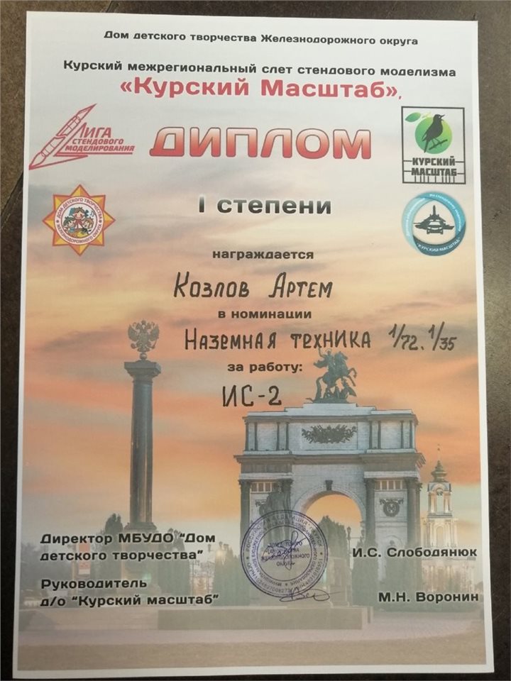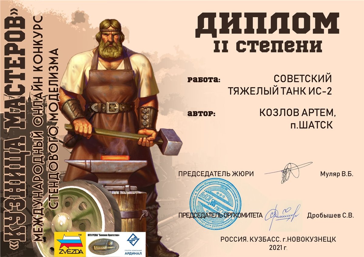 2 место в номинации: "Д.3. - Бронетехника", возрастная группа - дети до 11 лет.