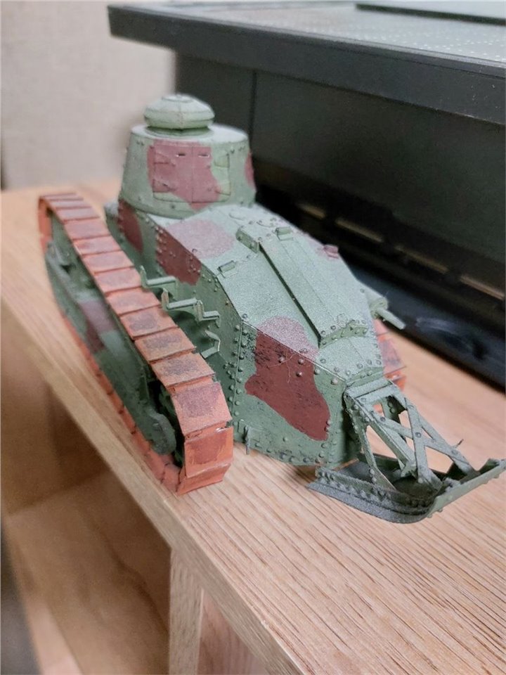 Представленная модель выполнена в классическом французском двухцветном камуфляже 1918 года. Башня, направляющие катки, ленивец, створки бронелюков сохраняют подвижность. Танк имеет полный интерьер места мехвода с необычной спинкой из кожанных тросов, натянутых между балками каркаса и боевого отделения с орудием, тросом для размещения командира-стрелка и боеукладки снарядов калибра 37 мм.