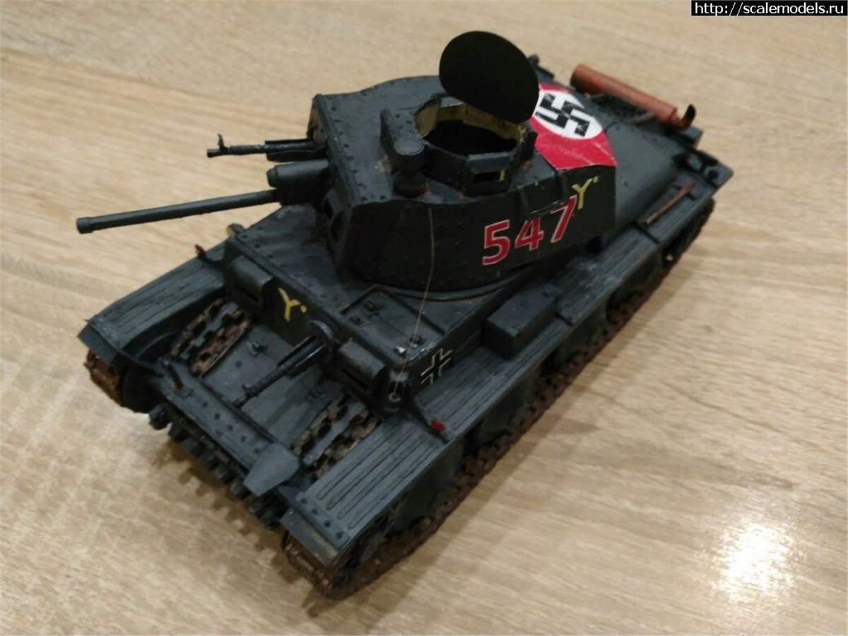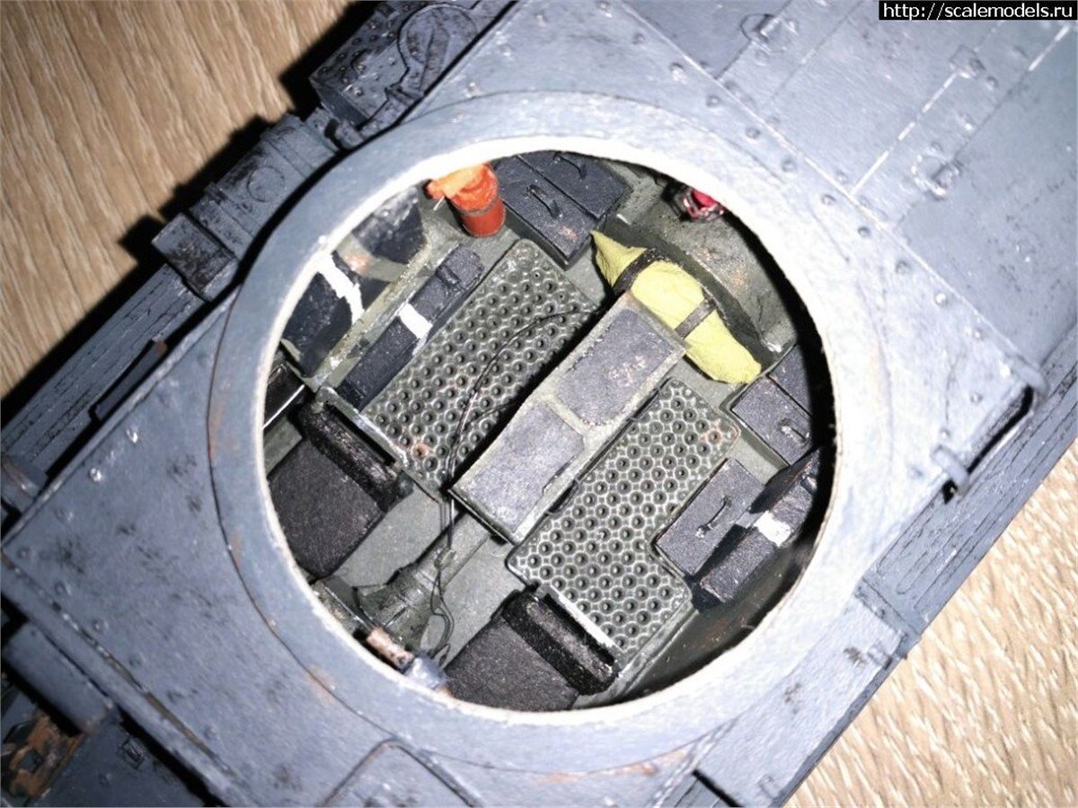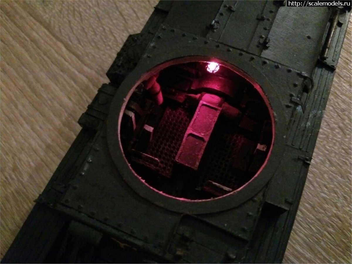 Мои эксперименты с освещением модели. Боевое отделение оснащено танковым фонарем, который питается от батареи.