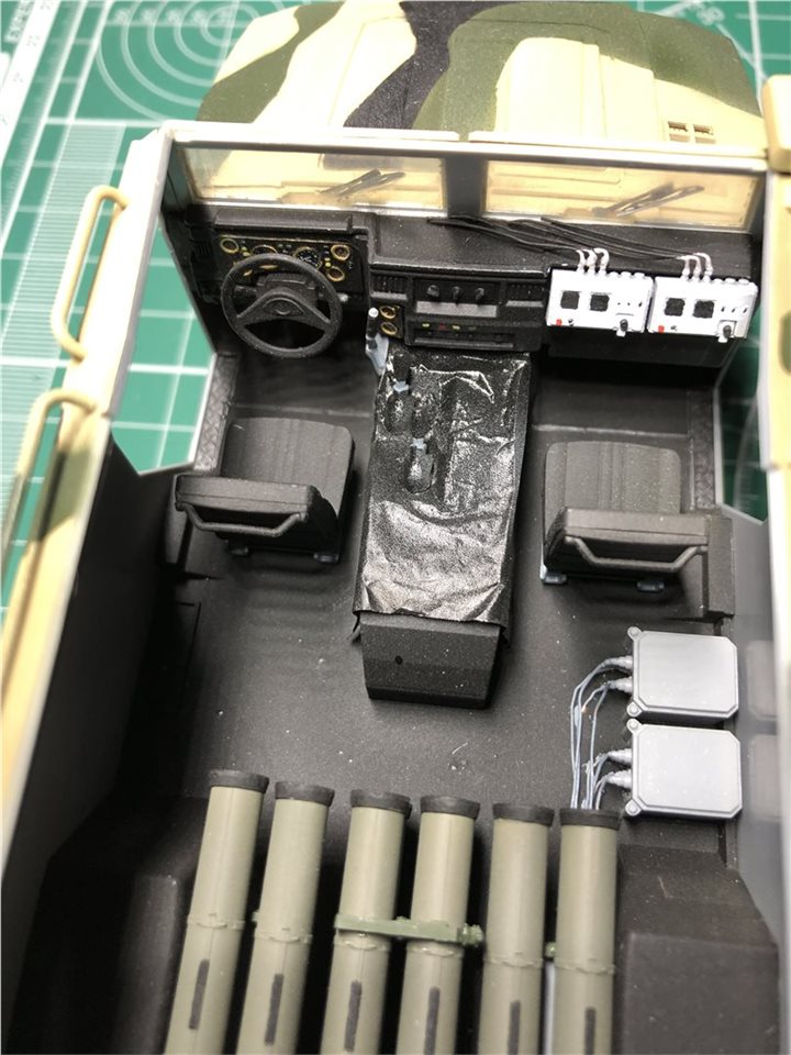 Покраска. База - АКашный грунт, затем тамия black, тамия хаки с прешейдингом; камо - тамия olive green и black аэром с помощью масок из малярного скотча. "Благодаря" тому, что изначально использовал маски от Wilder - перекрашивал всю модель - отпечатки