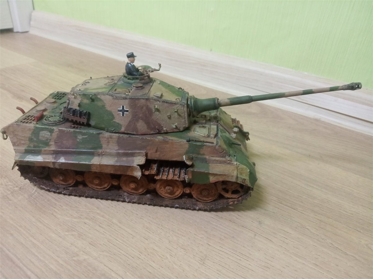 Немецкий тяжелый танк, производившийся с 1944 по 1945 гг,в руках умелого экипажа была грозной машиной,но в тигре было больше минусов чем плюсов,т.к. танк производился в конце войны у него был ряд недостатков,например броня,она была толстая,но хрупкая, из-за отсутсия присадок,броня при попадании трескалаясь и лопалась чо наносило урон экипажу