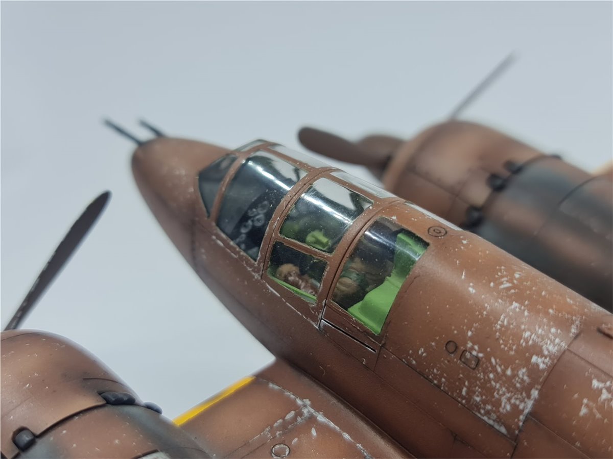 Окраска - тамиевскими же акрилами, смывка - также тамия. Лаки - глянец - тамия клеар, полуматовый - Satin от Валехо. Были сымитированы сколы, копоть и т.д. пилоты окрашены акрилами от Валехо. Посадочный огонь - самодел из литника и скотча.