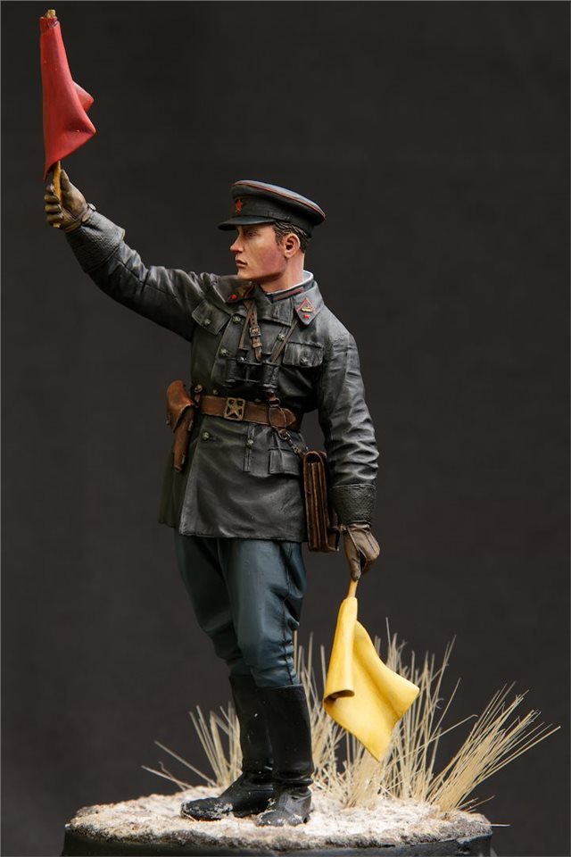 Офицер бронетанковых войск от Quasar Miniatures в масштабе 1/16. Красил акрилом Vallejo. Основание - гипс, текстурная паста Vallejo, пигменты Zip.
