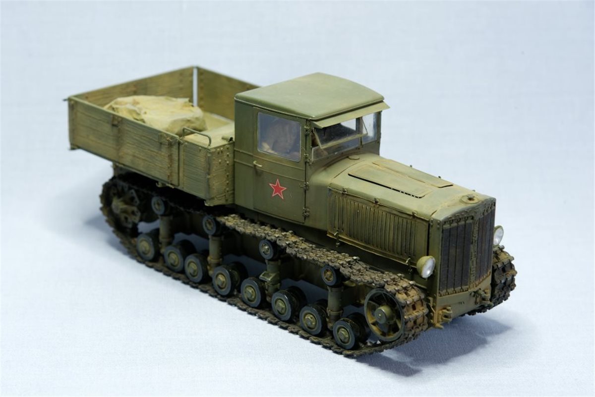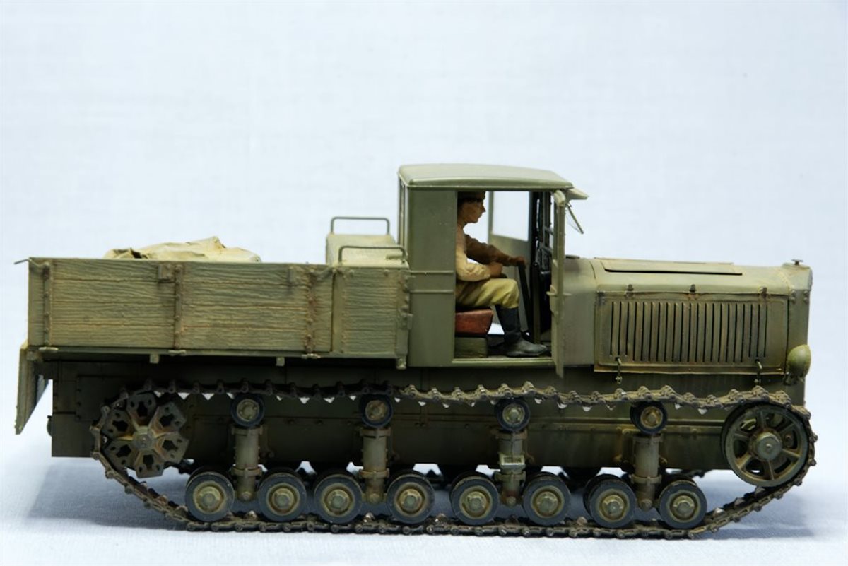 Собирал его специально для гаубицы Б-4. Сильно в матчасть не вдавался, но кое-что поменял: капот с поздними створками от VoyagerModel, петли рабочие из того-же набора, траки металл от Master Club, пересадил водителя ( от Miniart) на правильную сторону, переставил глушитель, скамейки из кузова решил убрать ( что-бы не как у всех), ведро - травление от "Микродизайна", брезент - обёрточная бумага. Окрас, как обычно: Vallejo, художественные масло и пастель, пигменты Wilder.