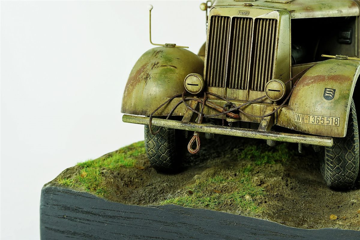 18-тонный тягач Sd.Kfz.9 (или FAMO, как его чаще называли) в основном использовался в качестве машины для эвакуации с поля боя поврежденных танков. Для этой цели тягач, помимо лебедки, часто оснащался специальным оборудованием – сошниками, краном и т.д. В начальный период войны его возможностей вполне хватало. Задача осложнилась после появления у панцерваффе новых тяжелых танков “Пантера” и “Тигр”. Так, для буксировки одного поврежденного “Тигра” приходилось “запрягать” три 18-тонных тягача! Кроме того, тягач использовался для буксировки трейлера грузоподъемностью 35 т и реже артсистем крупного калибра.