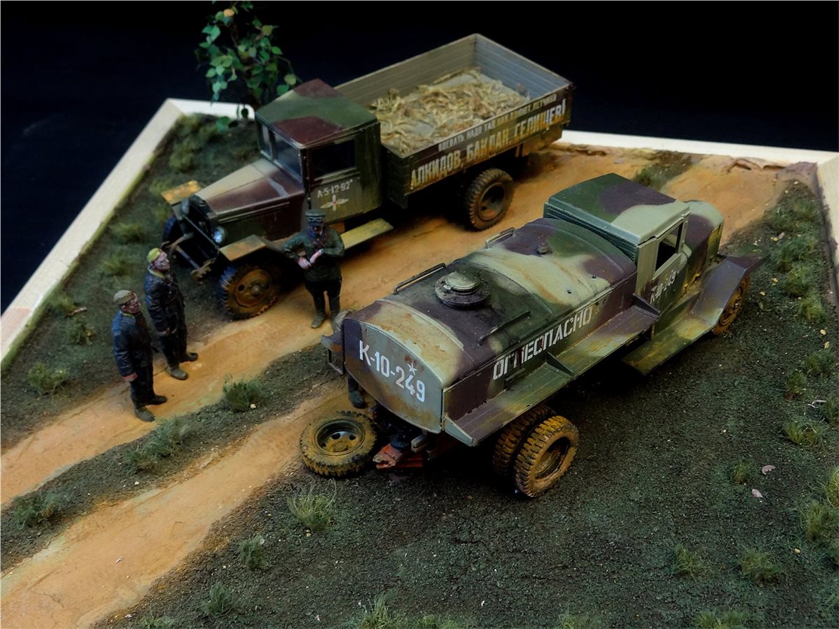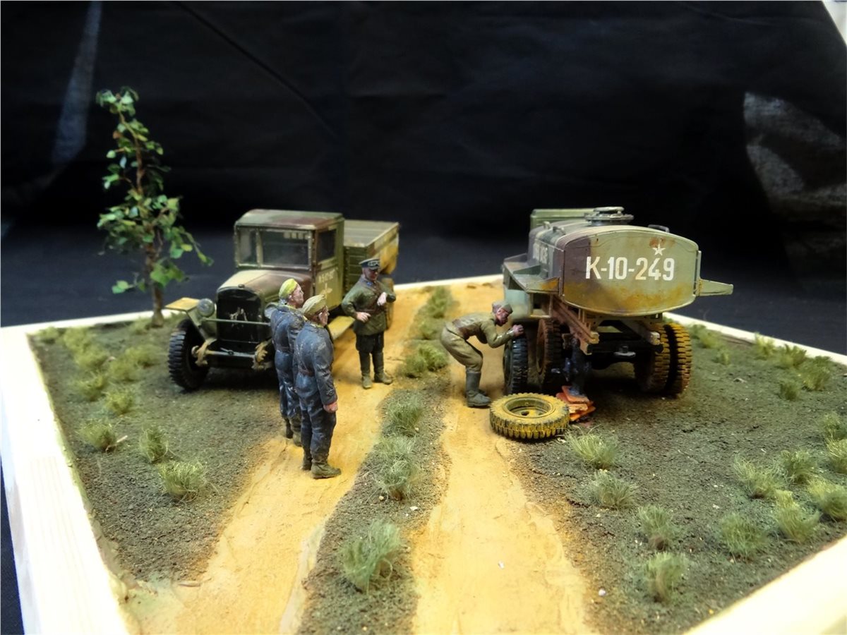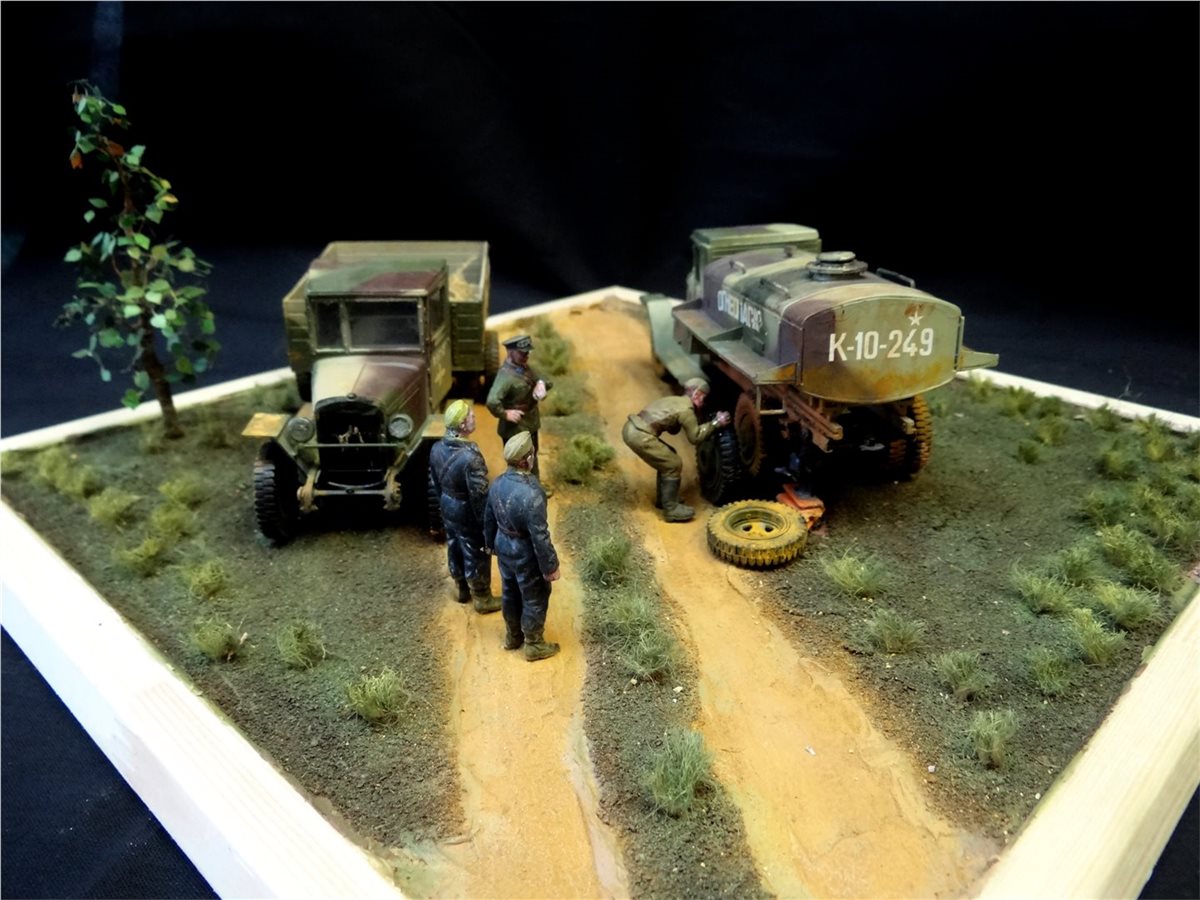 Диорама "Учитесь у старшины" построена на самодельном основании с использованием наборов "Звезды", "Восточного Экспресса" и "ICM", подвергнутых некоторым доработкам. Вторая сюжетная работа.
