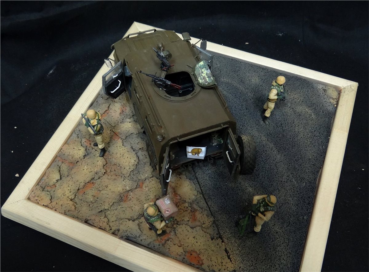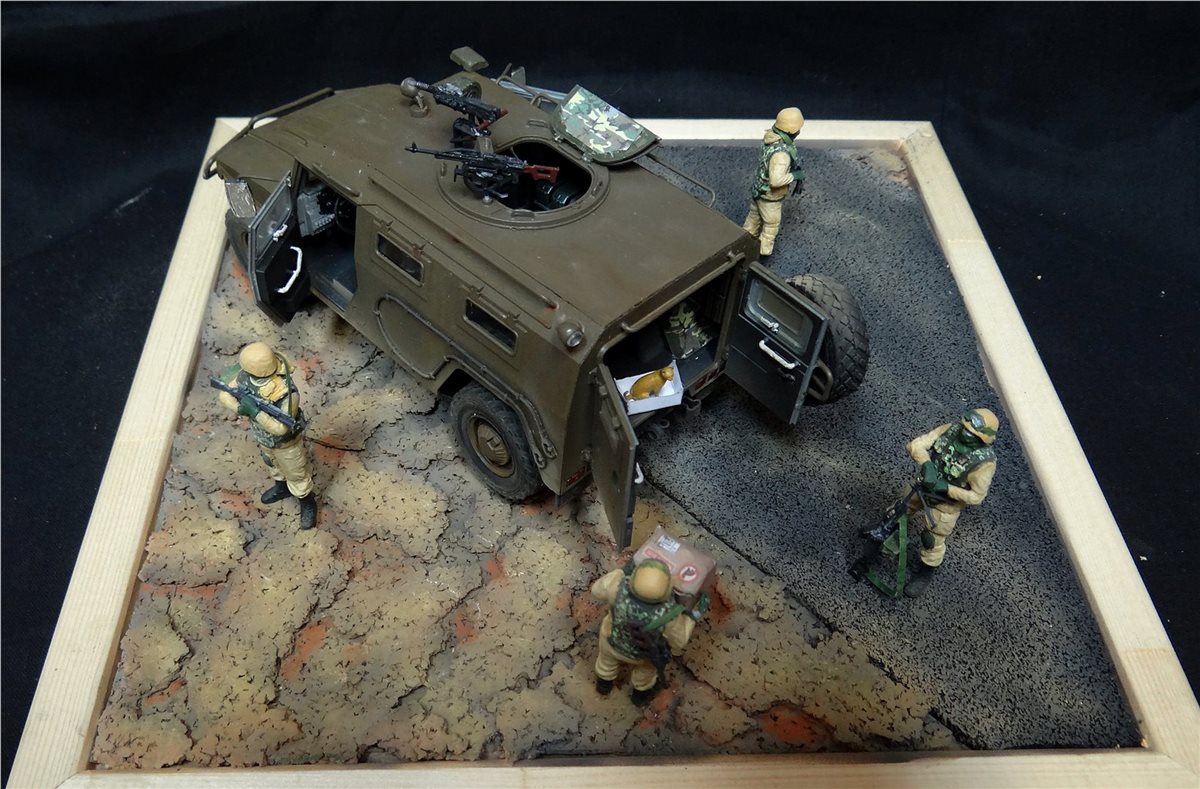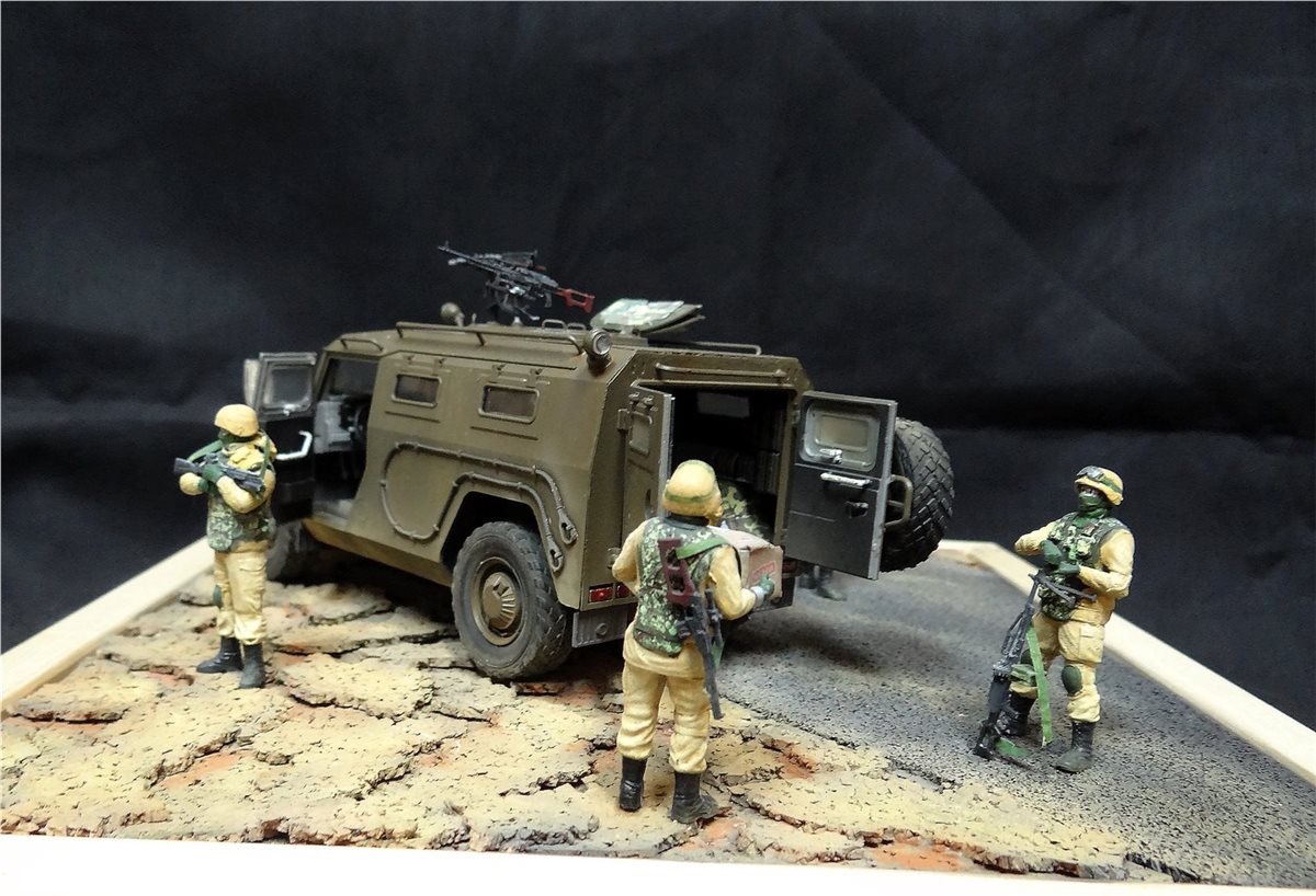 Диорама "Прибился" построена на базе наборов фирмы "Звезда". Выполнены некоторые доработки фигур и автомобиля "Тигр".