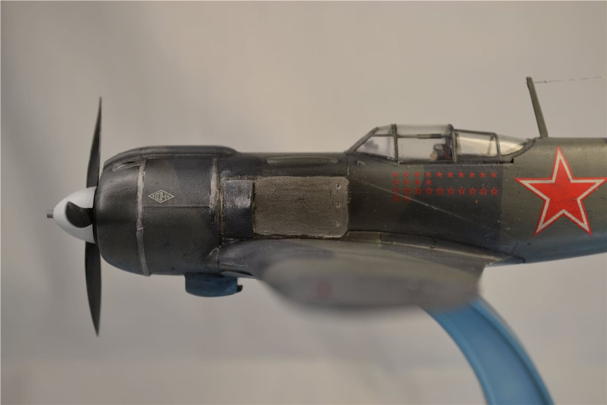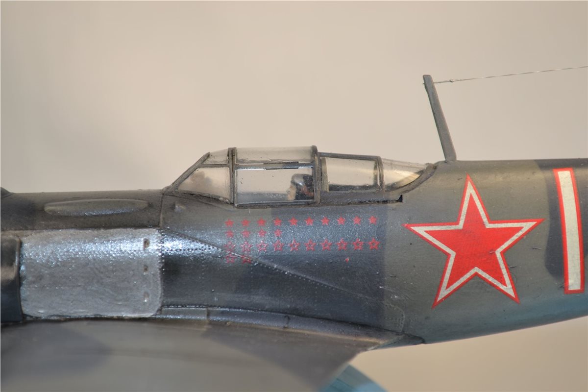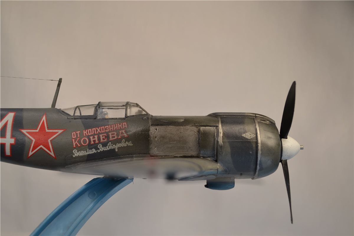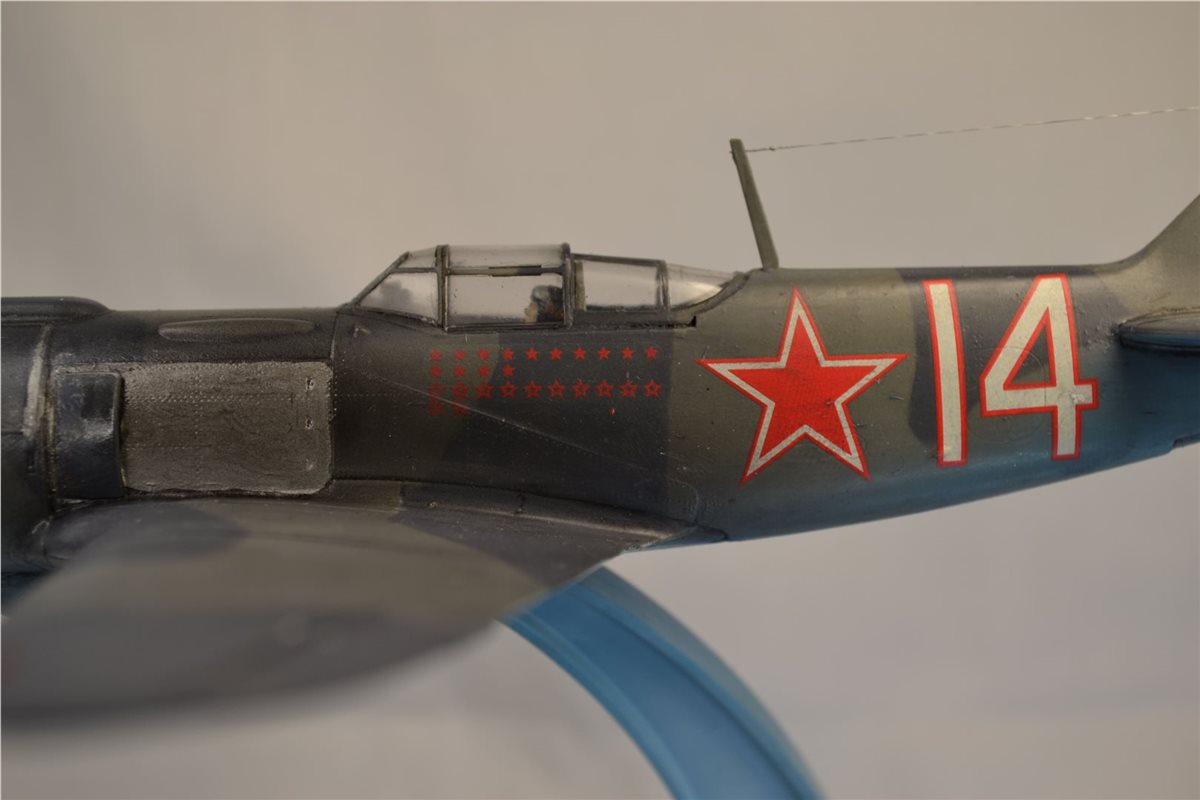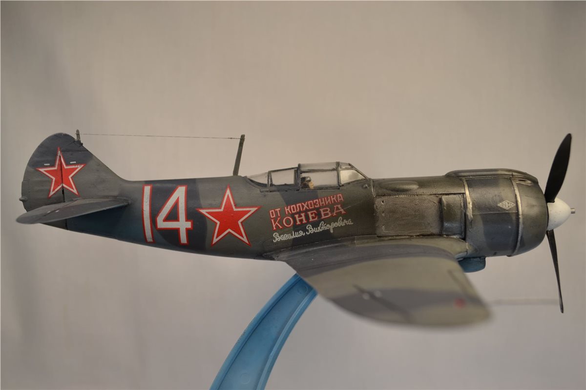 Советский истребитель "Ла-5ФН" летчика-аса Ивана Кожедуба. Модель фирмы "Звезда", выполнена из пластика, окрашена красками фирмы "Tamiya".
