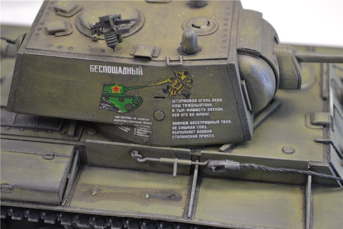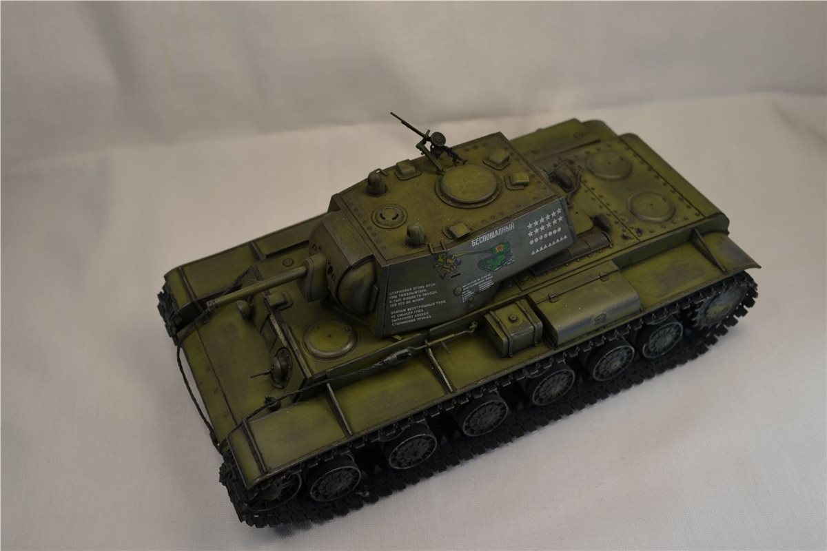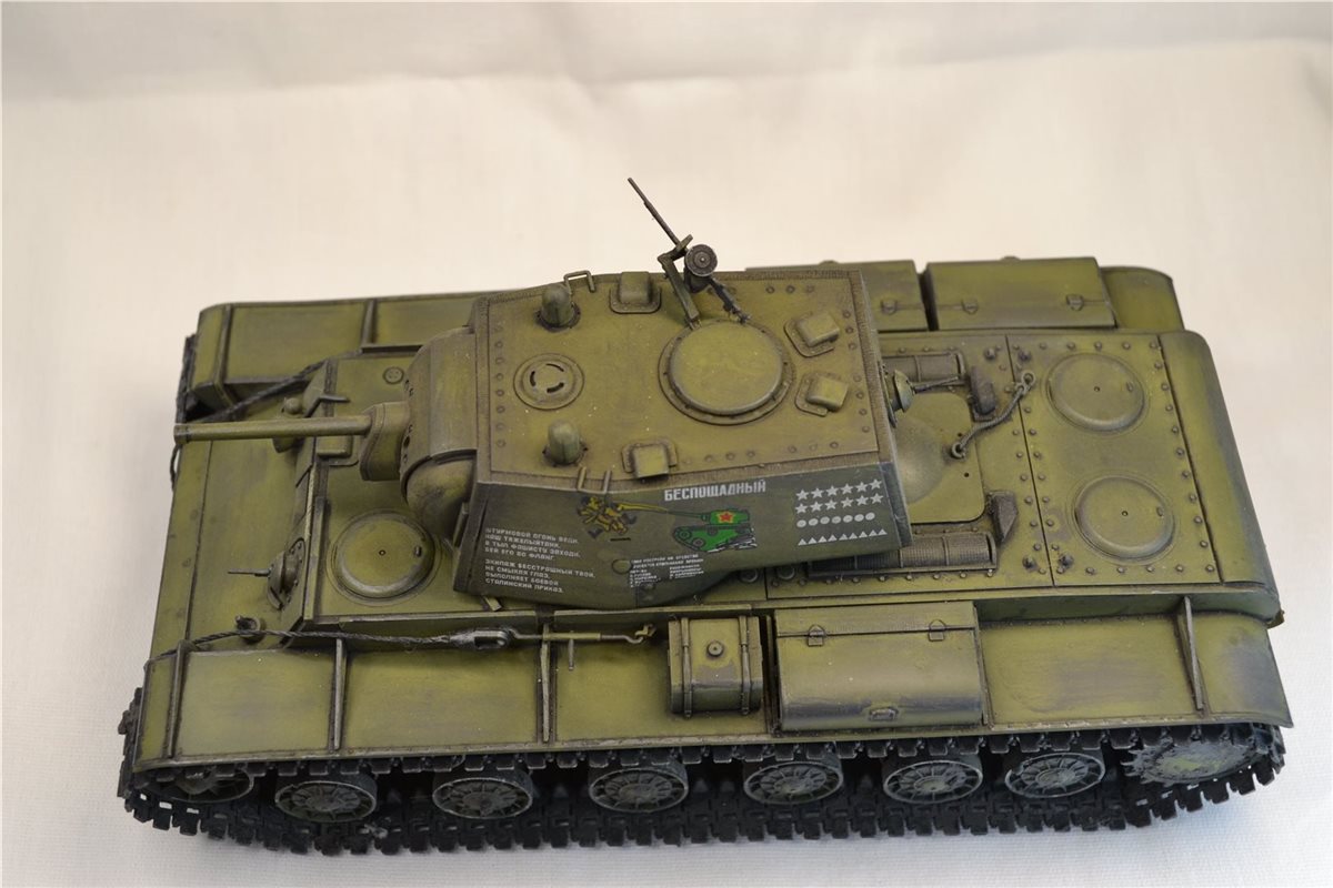 Советский тяжелый танк КВ-1 "Беспощадный" построенный на личные сбережения советских работников искусств - лауреатов Сталинской премии. Гвардейская танковая бригада полковника М. Скубы. Западный фронт, осень 1942 г. Модель фирмы "Звезда", выполнена из пластика, окрашена красками фирмы "Tamiya".