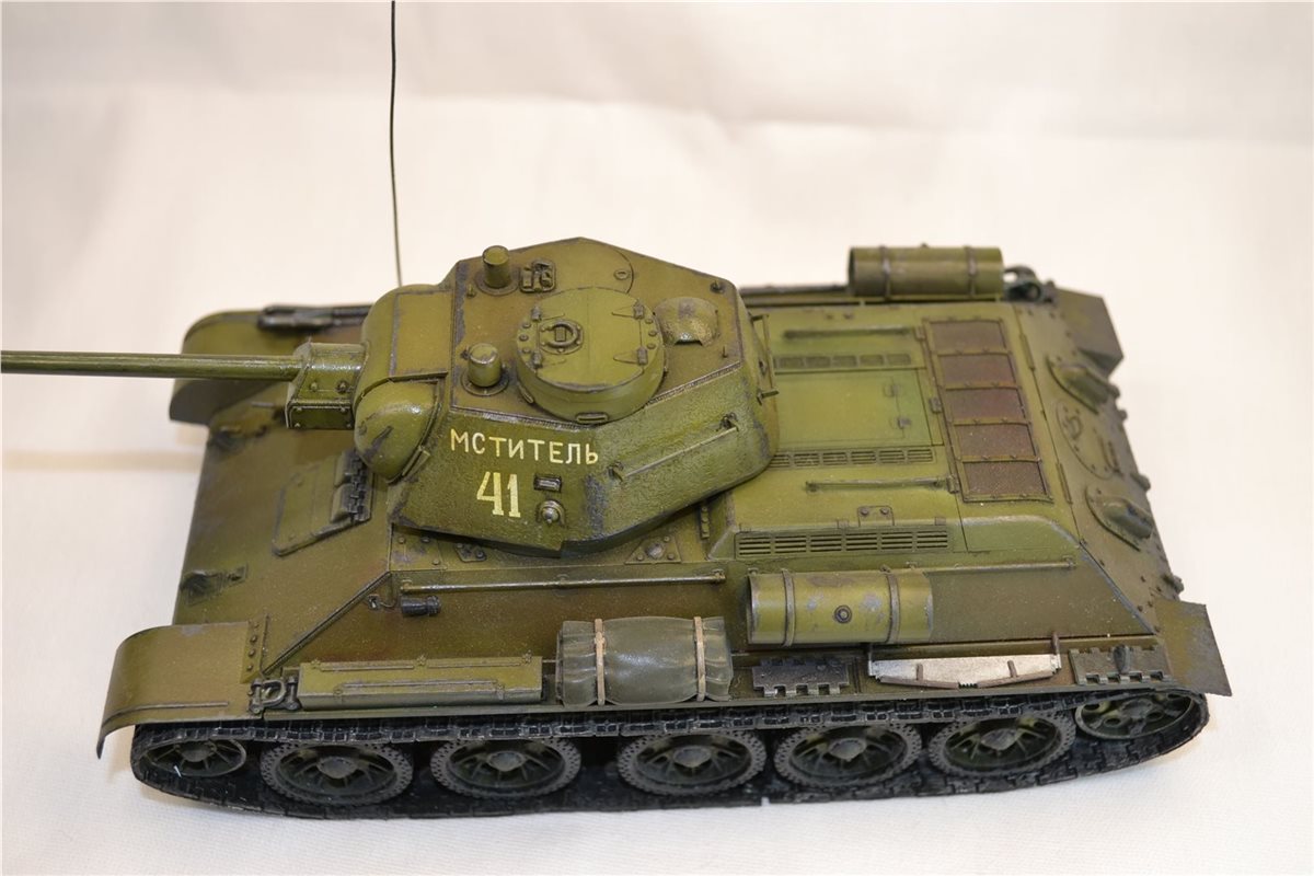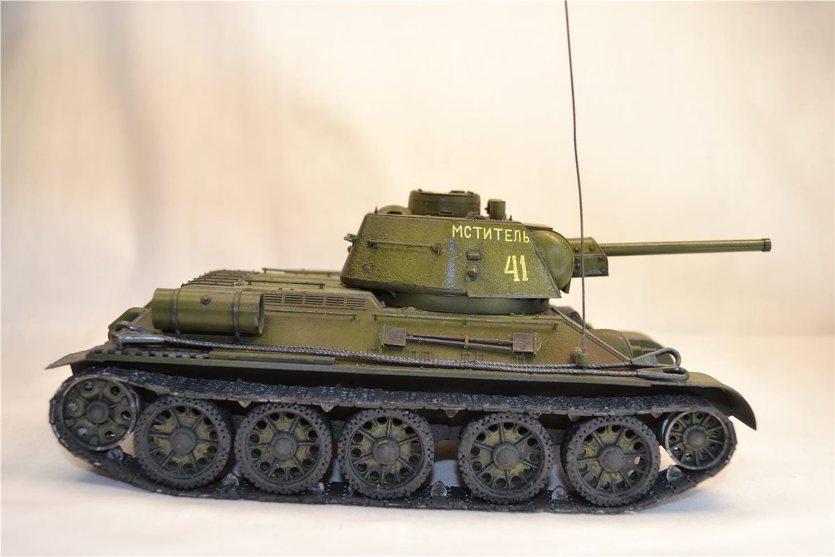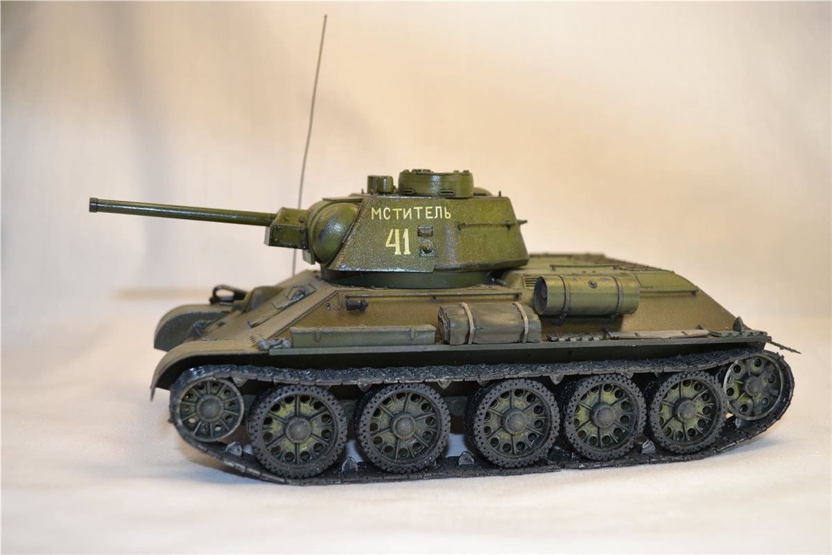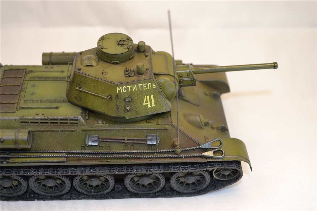 Советский средний танк Т-34/76 (производства конца 1943 г.). Севастополь, май 1944 г. Модель фирмы "ICM", выполнена из пластика, окрашена красками фирмы "Tamiya". Антенна выполнена из гитарной струны.