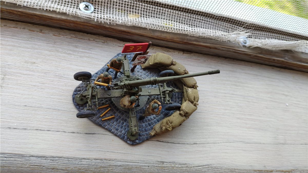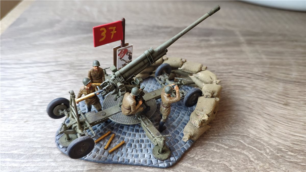 Тяжелая советская зенитка от Звезды. Основание и мешки самодельные, плакаты покупные.