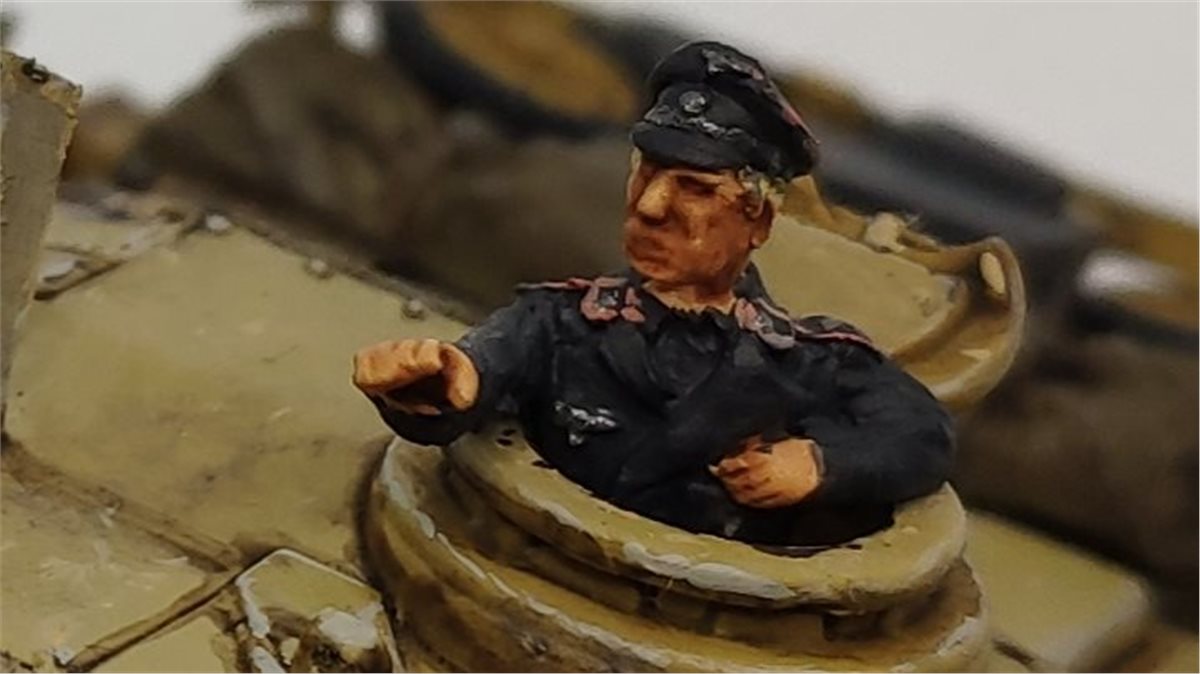 Танкист - сделал небольшие доработки - из малярного скотча прилепил ему погоны (на модели их почему-то нет) - черный серый база, светлосерый фильтр, розовый кант на погонах и фуражке, oily steel - знаки отличия, желтые волосы, лицо проливкой reckland fleshade.