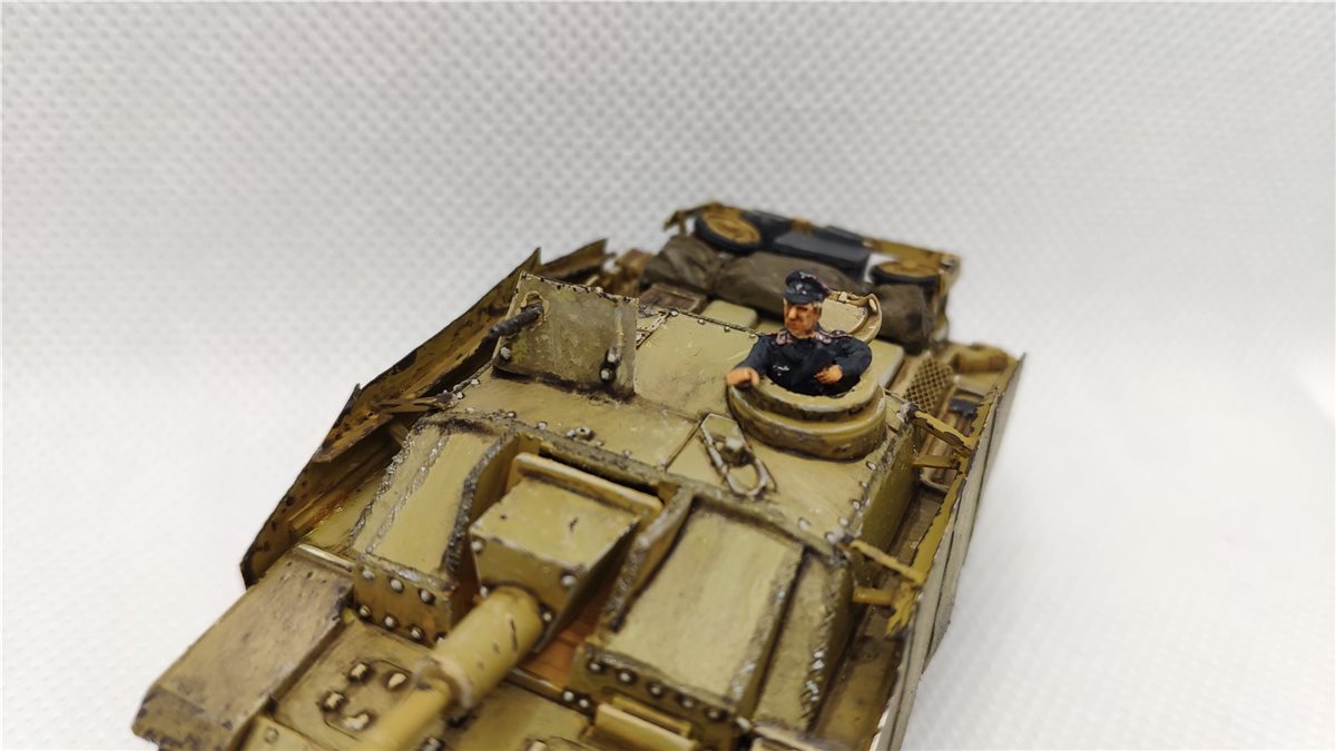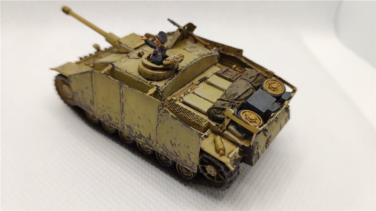 Sturmgeshutz III ausf. G. Красил Vallejo Air Camoflage Grey - база, затем маслами Wielder, затем полуматовый лак, затенения Citadel Argax Earthshade и Nuil Oil, высветления Splinter strips и Iraqi Sand, сколы с подложкой - iraqi sand и german c. black brown.