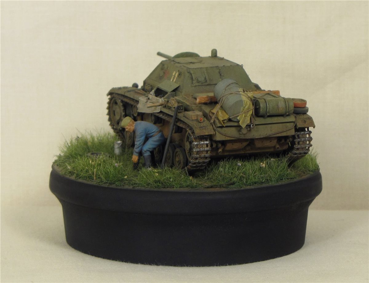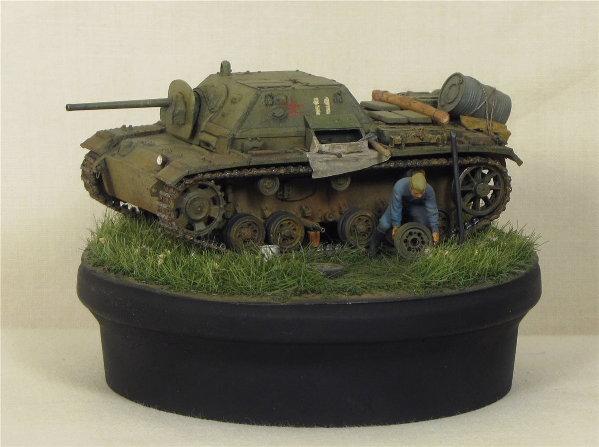 В Красной армии воевало около 200 таких машин, построенных на базе трофейных Pz.3. Попытался показать один из эпизодов обслуживания данного вида техники.